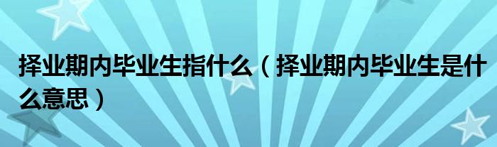 1、择业期内是什么意思 ...按国家有关规定,高校毕业生从毕业之日起两年内为择业期。