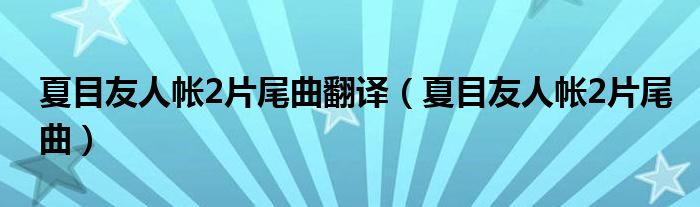 夏目友人帐2片尾曲翻译(夏目友人帐2片尾曲)