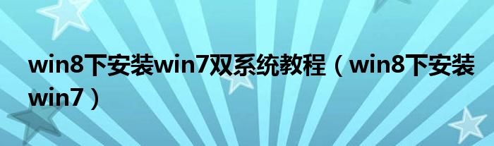 大家好,小飞来为大家解答以上问题,win8下安装win7双系统教程,win8下安装win7很多人还不知道,现在让我们一起来看看吧!