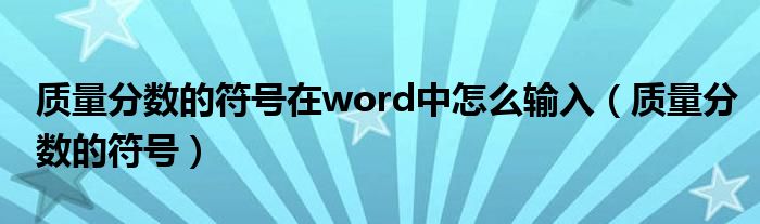 大家好,小晋来为大家解答以下问题,关于质量分数的符号在word中怎么输入,质量分数的符号很多人还不知道,今天让我们一起来看看吧!