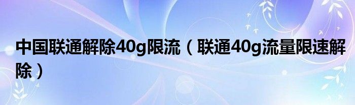 大家好,小晋来为大家解答以下问题,关于中国联通解除40g限流,联通40g流量限速解除很多人还不知道,今天让我们一起来看看吧!