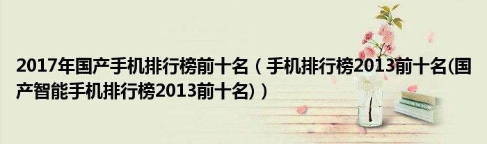 大家好,小常来为大家解答以上问题。2017年国产手机排行榜前十名,手机排行榜2013前十名(国产智能手机排行榜2013前十名)很多人还不知道,现在让我们一起来看看吧!