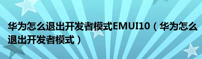 华为怎么退出开发者模式EMUI10(华为怎么退出开发者模式)