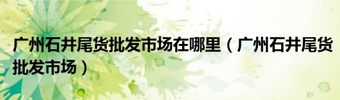 关于广州石井尾货批发市场在哪里,广州石井尾货批发市场这个很多人还不知道,今天菲菲来为大家解答以上的问题,现在让我们一起来看看吧!