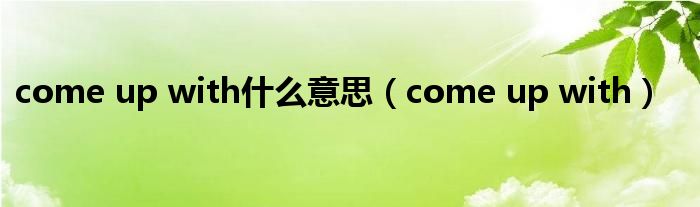 关于come up with什么意思,come up with这个很多人还不知道,今天菲菲来为大家解答以上的问题,现在让我们一起来看看吧!