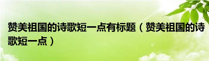 大家好,小晋来为大家解答以下问题,关于赞美祖国的诗歌短一点有标题,赞美祖国的诗歌短一点很多人还不知道,今天让我们一起来看看吧!