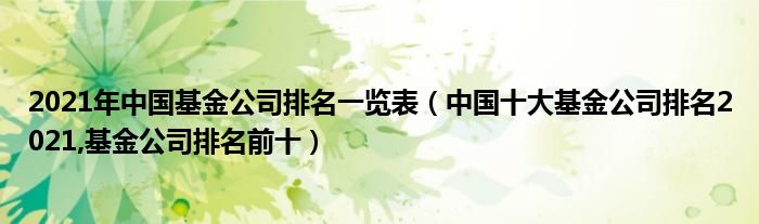 大家好,小常来为大家解答以上问题。2021年中国基金公司排名一览表,中国十大基金公司排名2021,基金公司排名前十很多人还不知道,现在让我们一起来看看吧!