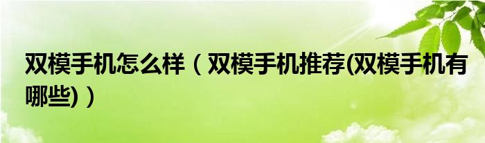 大家好,小常来为大家解答以上问题。双模手机怎么样,双模手机推荐(双模手机有哪些)很多人还不知道,现在让我们一起来看看吧!
