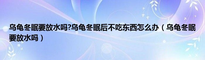 大家好,小晋来为大家解答以下问题,关于乌龟冬眠要放水吗?乌龟冬眠后不吃东西怎么办,乌龟冬眠要放水吗很多人还不知道,今天让我们一起来看看吧!