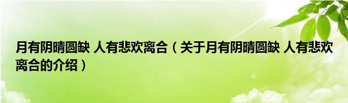 月有阴晴圆缺人有悲欢离合(关于月有阴晴圆缺人有悲欢离合的介绍)
