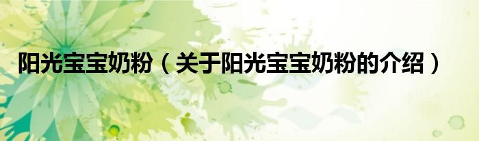 大家好,今天小乐来为大家解答以上的问题。阳光宝宝奶粉,关于阳光宝宝奶粉的介绍很多人还不知道,现在让我们一起来看看吧!