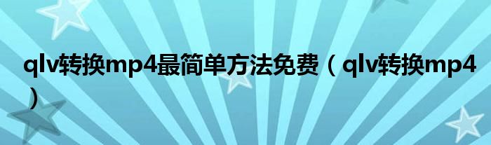 大家好,小晋来为大家解答以下问题,关于qlv转换mp4最简单方法免费,qlv转换mp4很多人还不知道,今天让我们一起来看看吧!