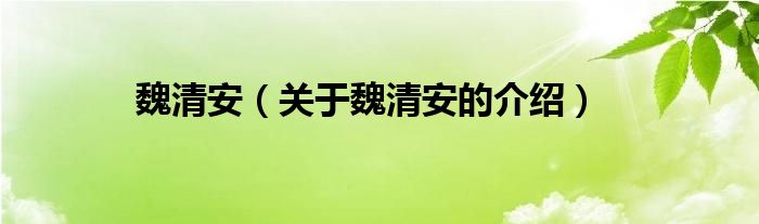 大家好,今天小乐来为大家解答以上的问题。魏清安,关于魏清安的介绍很多人还不知道,现在让我们一起来看看吧!