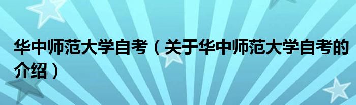 华中师范大学自考(关于华中师范大学自考的介绍)