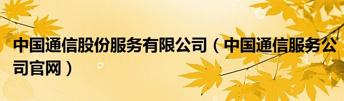 中国通信股份服务有限公司(中国通信服务公司官网)
