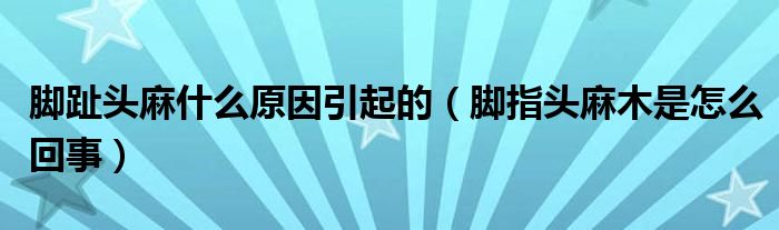 关于脚趾头麻什么原因引起的,脚指头麻木是怎么回事这个很多人还不知道,今天菲菲来为大家解答以上的问题,现在让我们一起来看看吧!