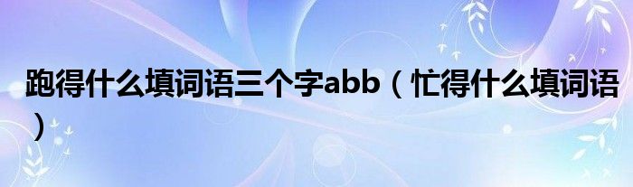 大家好,小晋来为大家解答以下问题,关于跑得什么填词语三个字abb,忙得什么填词语很多人还不知道,今天让我们一起来看看吧!