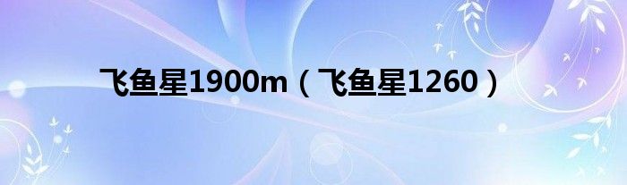 大家好,雨雨来为大家解答以上问题,飞鱼星1900m,飞鱼星1260很多人还不知道,现在让我们一起来看看吧!