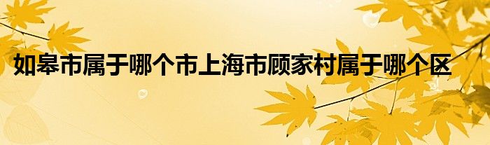 关于如皋市属于哪个市上海市顾家村属于哪个区这个很多人还不知道,今天菲菲来为大家解答以上的问题,现在让我们一起来看看吧!
