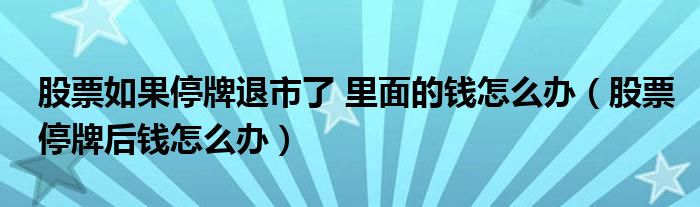关于股票如果停牌退市了 里面的钱怎么办,股票停牌后钱怎么办这个很多人还不知道,今天菲菲来为大家解答以上的问题,现在让我们一起来看看吧!