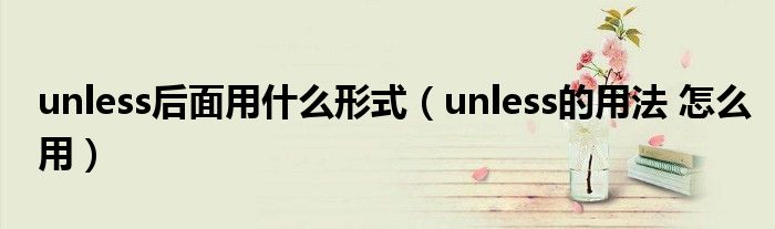关于unless后面用什么形式,unless的用法 怎么用这个很多人还不知道,今天菲菲来为大家解答以上的问题,现在让我们一起来看看吧!