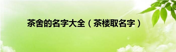 关于茶舍的名字大全,茶楼取名字这个很多人还不知道,今天菲菲来为大家解答以上的问题,现在让我们一起来看看吧!