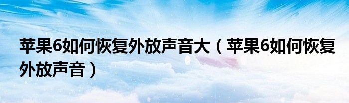 大家好,小晋来为大家解答以下问题,关于苹果6如何恢复外放声音大,苹果6如何恢复外放声音很多人还不知道,今天让我们一起来看看吧!