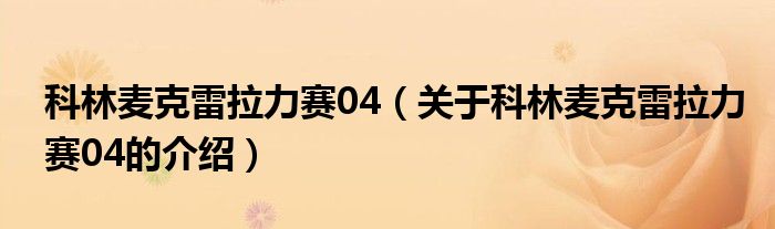 科林麦克雷拉力赛04(关于科林麦克雷拉力赛04的介绍)