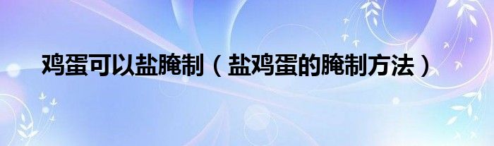 关于鸡蛋可以盐腌制,盐鸡蛋的腌制方法这个很多人还不知道,今天菲菲来为大家解答以上的问题,现在让我们一起来看看吧!