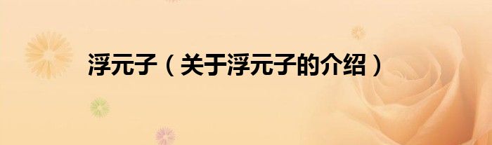 大家好,小都来为大家解答以上的问题。浮元子,关于浮元子的介绍很多人还不知道,现在让我们一起来看看吧!