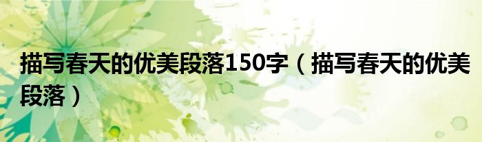 关于描写春天的优美段落150字,描写春天的优美段落这个很多人还不知道,今天菲菲来为大家解答以上的问题,现在让我们一起来看看吧!