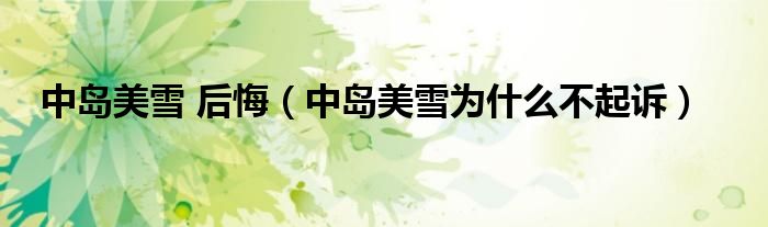 中岛美雪后悔(中岛美雪为什么不起诉)