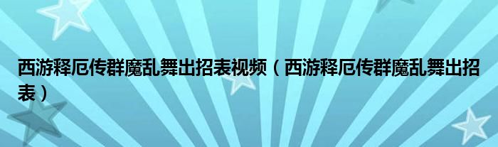 西游释厄传群魔乱舞出招表视频(西游释厄传群魔乱舞出招表)