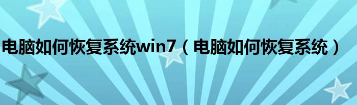 大家好,小飞来为大家解答以上问题,电脑如何恢复系统win7,电脑如何恢复系统很多人还不知道,现在让我们一起来看看吧!