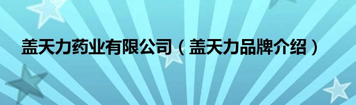 大家好,小源来为大家解答以上问题。盖天力药业有限公司,盖天力品牌介绍很多人还不知道,现在让我们一起来看看吧!
