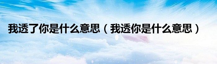 大家好,小晋来为大家解答以下问题,关于我透了你是什么意思,我透你是什么意思很多人还不知道,今天让我们一起来看看吧!