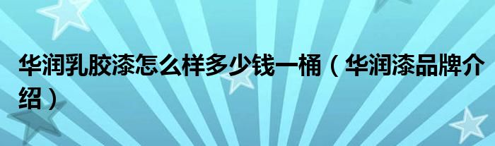 大家好,小源来为大家解答以上问题。华润乳胶漆怎么样多少钱一桶,华润漆品牌介绍很多人还不知道,现在让我们一起来看看吧!