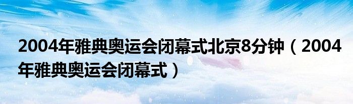 大家好,小飞来为大家解答以上的问题。2004年雅典奥运会闭幕式北京8分钟,2004年雅典奥运会闭幕式这个很多人还不知道,现在让我们一起来看看吧!