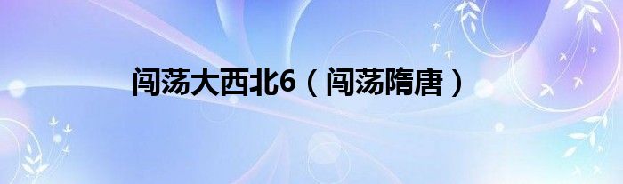 闯荡大西北6,闯荡隋唐这个很多人还不知道,小飞来为大家解答以上的问题。现在让我们一起来看看吧!