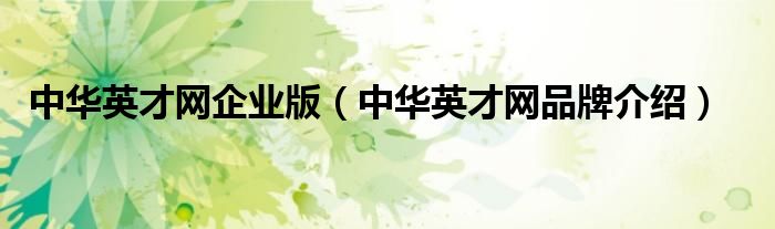 大家好,小源来为大家解答以上问题。中华英才网企业版,中华英才网品牌介绍很多人还不知道,现在让我们一起来看看吧!
