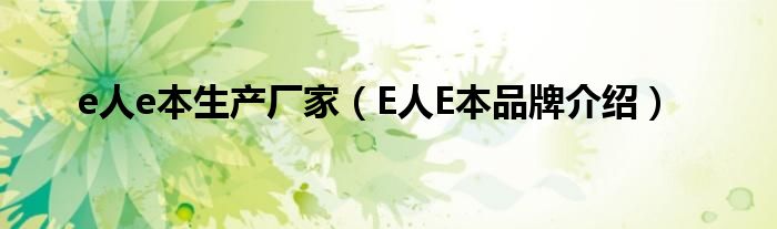 大家好,小源来为大家解答以上问题。e人e本生产厂家,E人E本品牌介绍很多人还不知道,现在让我们一起来看看吧!