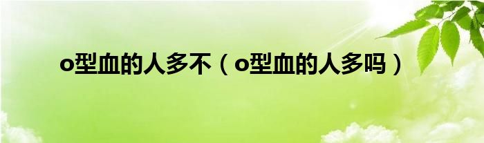 大家好,小晋来为大家解答以下问题,关于o型血的人多不,o型血的人多吗很多人还不知道,今天让我们一起来看看吧!