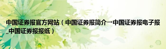 中国证券报官方网站(中国证券报简介→中国证券报电子报_中国证券报报纸)