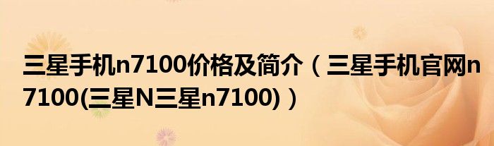 大家好,小常来为大家解答以上问题。三星手机n7100价格及简介,三星手机官网n7100(三星N三星n7100)很多人还不知道,现在让我们一起来看看吧!