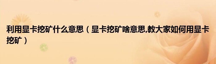 大家好,小常来为大家解答以上问题。利用显卡挖矿什么意思,显卡挖矿啥意思,教大家如何用显卡挖矿很多人还不知道,现在让我们一起来看看吧!