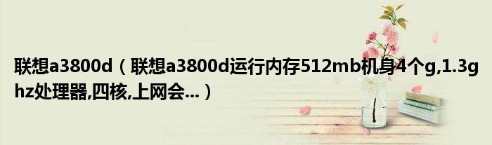 1,联想a3800d运行内存512mb机身4个g,1.3ghz处理器,四核,上网会...:上网卡不卡 要看你的网速,这个配置 运行网页浏览 是不会卡的 一些网游会卡是因为配置不足