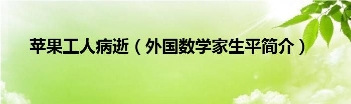 大家好,小常来为大家解答以上问题。苹果工人病逝,外国数学家生平简介很多人还不知道,现在让我们一起来看看吧!