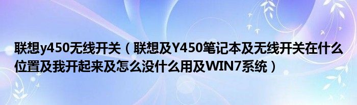 联想y450无线开关(联想及Y450笔记本及无线开关在什么位置及我开起来及怎么没什么用及WIN7系统)