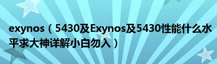 大家好,小常来为大家解答以上问题。exynos,5430及Exynos及5430性能什么水平求大神详解小白勿入很多人还不知道,现在让我们一起来看看吧!