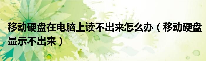 移动硬盘在电脑上读不出来怎么办(移动硬盘显示不出来)